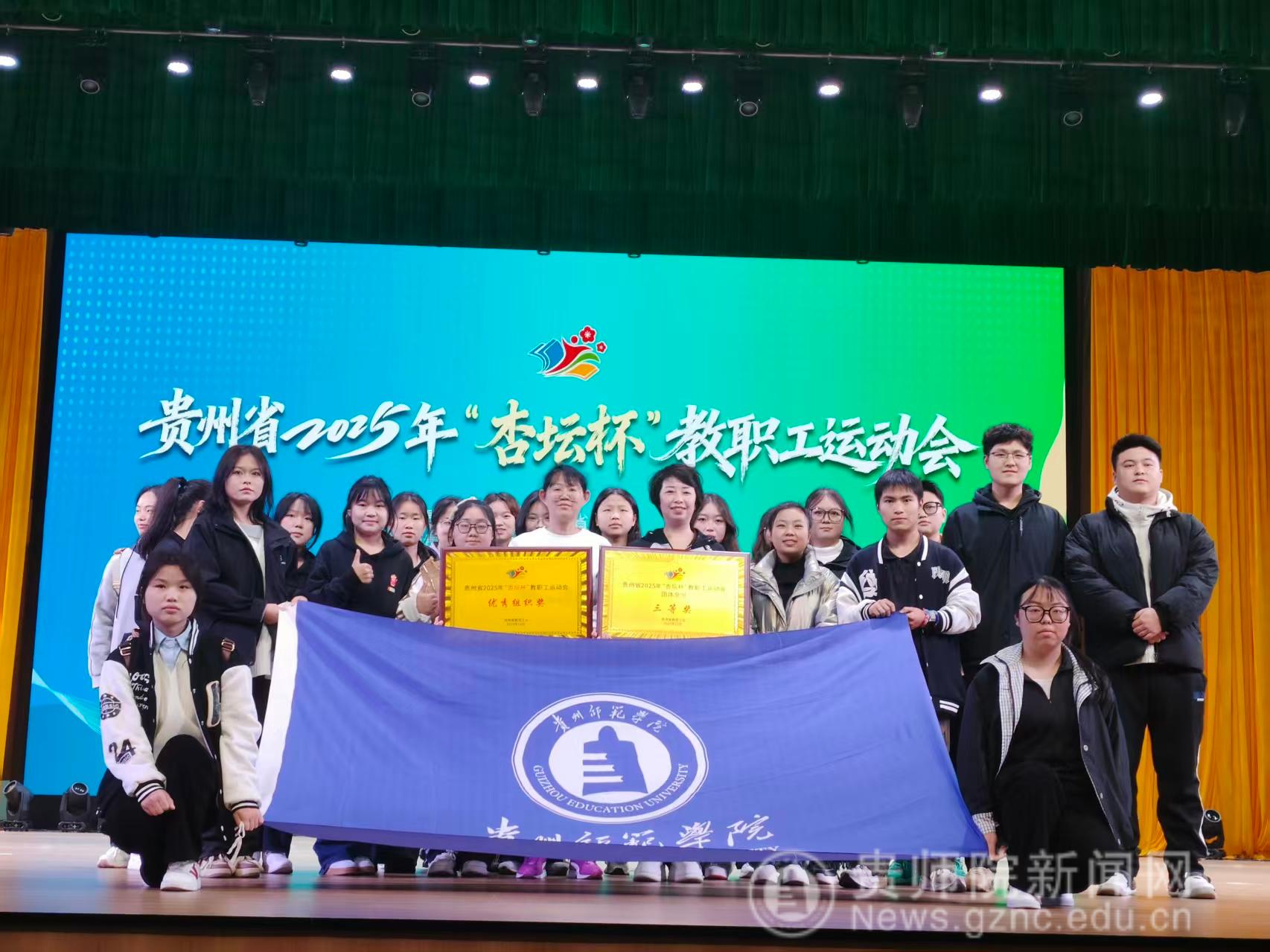 本网讯 11月30日下午,为期一个月的贵州省“杏坛杯”教职工运动会在贵州轻工职业大学大礼堂圆满闭幕。beat365在此次全省高校教职工运动会中表现卓越,凭借出色的组织工作和全面的竞技实力,荣获“优秀组织奖”及“团体总分三等奖” 两项荣誉,充分展现了beat365教职工团结奋进、追求卓越的精神风貌。