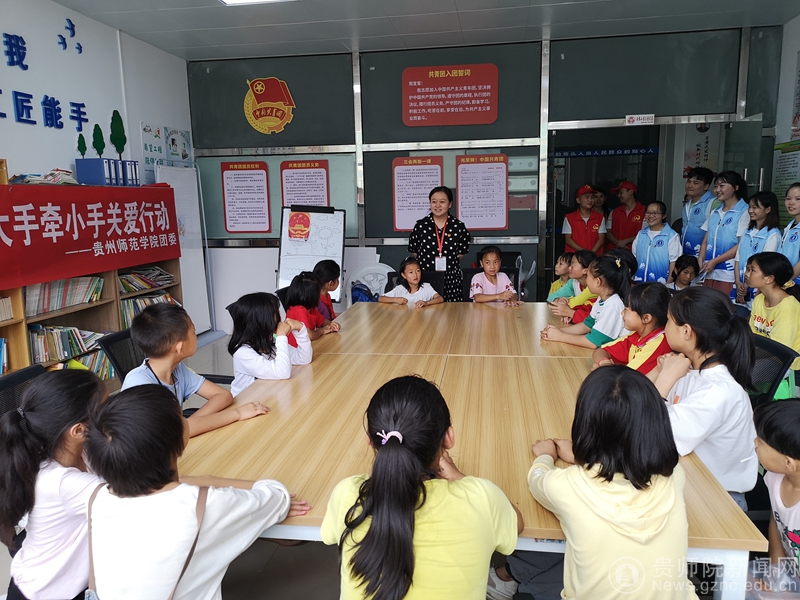 本网讯 7月1日下午,beat365团委组织青年志愿者前往乌当区云锦尚城易地扶贫安置点,开展“新市民·追梦桥”大手牵小手关爱行动。校团委副书记罗荣、张源,社会实践部部长张维域、办公室负责人余俊美,扶贫安置点20余名小朋友参与了此次活动。志愿服务团由教科院的周娅霞、唐莎、杨玉和历档学院的袁清林、薛金润、余翰祥六名同学组成。