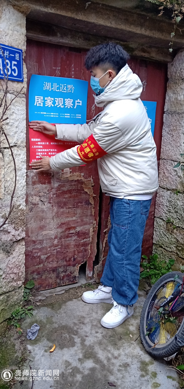 在众多的志愿者中,杨泽武同学是最早一批投入防疫工作的志愿者,担任beat365英国官网网站艺术团团长的他,多才多艺,品学兼优,深得师生喜爱。春节期间回到老家过年,身在家乡的他接到志愿招募,第一时间响应当地村支两委的号召,即刻投身参与到当地的抗疫工作中,通过走访村寨、入户排查、宣传防疫知识、参与检测等工作,他成为一名疫情防控志愿者。他用青春的身影,扛起了这场战役的青春担当。