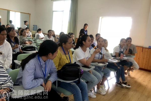 息烽县小寨坝幼儿园由国培班主任冯静和学前教育专业李姿雨老师带队。首先,小寨坝中心幼儿园的教师及幼儿向国培学员在户外就自主游戏活动进行了集中展示;其次,围绕户外自主游戏活动开展过程中存在的“安全”、“家园沟通”、“游戏主题的生成”、“自主游戏活动中教师的指导策略”等问题,国培学员、小寨坝幼儿园教师及教科院学前教育专业教师在活动室展开研讨,会上国培学员还纷纷就自己所思所想和小寨坝幼儿园老师展开了讨论。