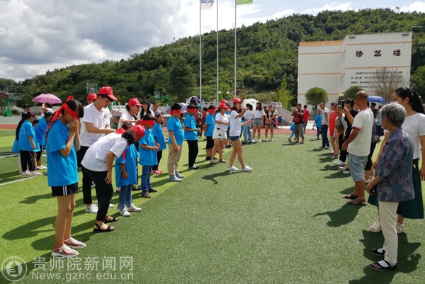 上午,西山营(底寨小学)的志愿者们在清脆的鸟儿叫声中迎来了孩子们的家长,孩子与家长都非常高兴,孩子与家长分享了这几天以来在学校的生活和所学到的东西,让家长们感到很放心;进入活动玩游戏的高潮部分时,游戏中家长与孩子们欢快的笑声不绝于耳,最后在游戏结束时依依不舍的送走了家长。