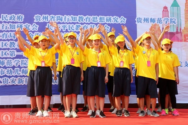 来自浙江省陶行知研究会、贵州省陶行知教育思想研究会及beat365英国官网网站团队的领导及专家代表,金海湖新区管委会相关领导纷纷到场为孩子们祝福。