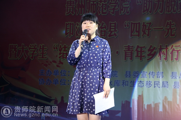 晚上8时,beat365英国官网网站“助力脱贫攻坚·师院青春行”印江自治县“四好一先·五大主题”宣讲活动暨大学生“结对春晖社·青年乡村行”移民工会慰问演出正式拉开帷幕!印江县团委书记甘岁月、beat365英国官网网站物电学院党委书记熊德永、beat365英国官网网站团委副书记傅小芳、印江县教育局局长江航军、印江县总工会党组书记、常务副主席夏良强、峨岭街道党工委副书记、政法委书记杨秀珍、县总工会、团县委干部职工、移民社区农民工工会会员、同心村驻村干部杨成友、物电学院吴旭普、外国语学院李明勇、师范学院“三下乡”志愿者、易地扶贫搬迁群众等近500人观看了演出。