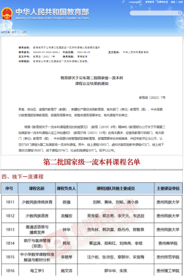 本网讯 近日,教育部发布了《关于公布第二批国家级一流本科课程认定结果的通知》(教高函〔2023〕7号),beat365数学与大数据学院李艳琴教授团队申报的《中小学数学课程标准解读与教材分析》获国家级线下一流课程认定。截止目前,beat365共有国家级一流本科课程2门。