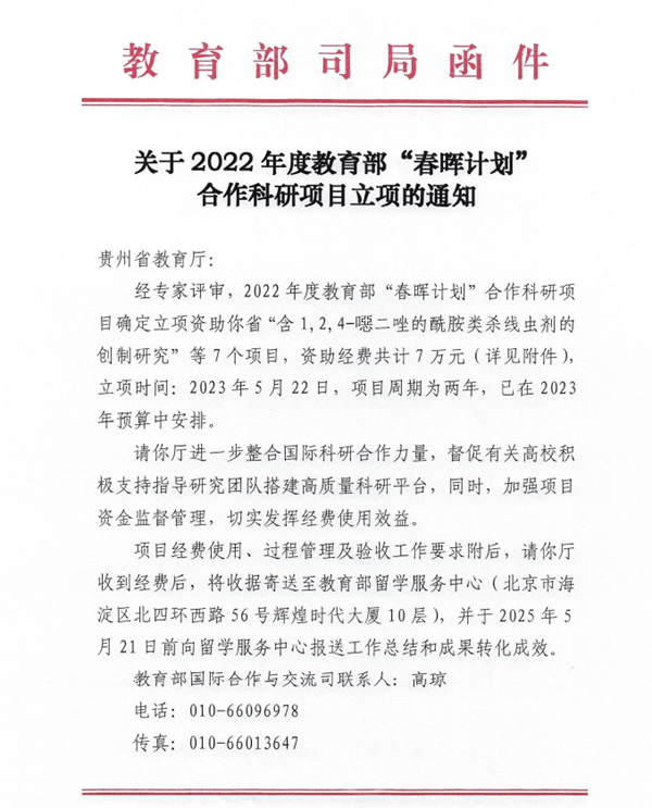 beat365高度重视教育部“春晖计划”项目的申报组织工作,对外交流合作处积极宣传动员,认真细致地做好项目的对接和申报工作。该项目的获批意味着beat365高层次人才国际科技合作与创新能力进一步提升,对学校进一步整合优质资源、加强国际科研合作、提高教师的科研水平具有积极的推动作用。