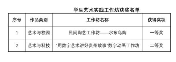 艺术实践工作坊获奖名单
