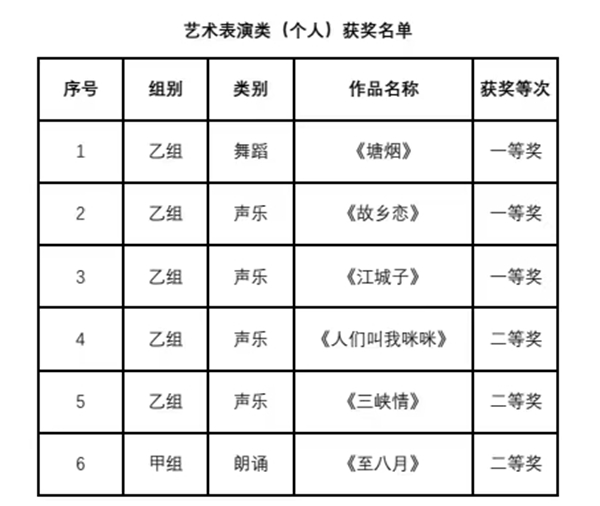艺术表演类(个人)获奖名单