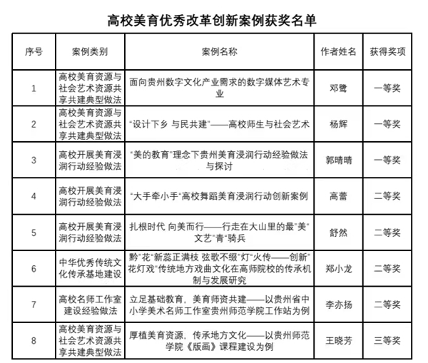 高校美育优秀案例获奖名单
