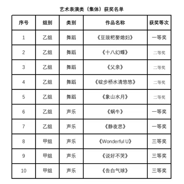 艺术表演类(集体)获奖名单