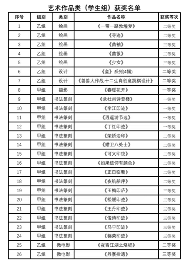 艺术作品(学生)获奖名单