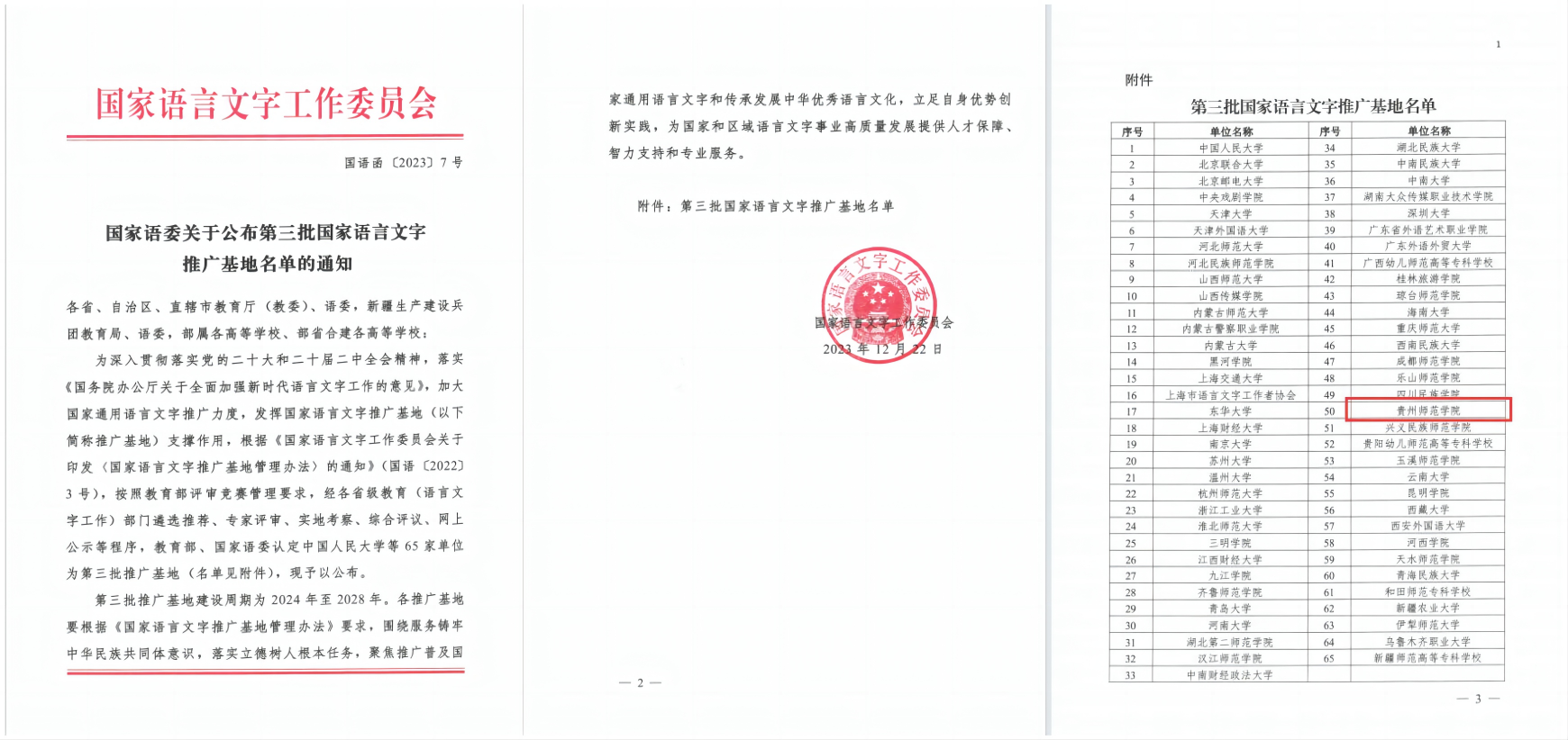 国家语委关于公布第三批国家语言文字推广基地名单的通知