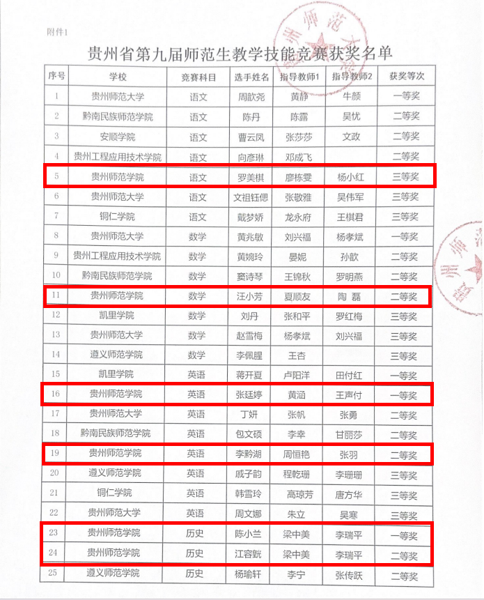 本网讯 6月27日至28日,由贵州省教育厅主办、贵州师范大学承办的贵州省第九届师范生教学技能竞赛在贵州师范大学花溪校区隆重举行。该赛事作为我省教师教育专业的一项传统盛事,beat365对此给予了高度重视。在各二级学院和教务处的精心组织与周密筹备下,以及在指导教师的悉心指导和反复打磨下,参赛选手们全力以赴、认真备赛。经过激烈的角逐,beat365学子不负众望,最终斩获一等奖5人、二等奖10人、三等奖6人,一、二等奖及获奖总数均位列全省所有参赛院校第二。