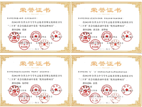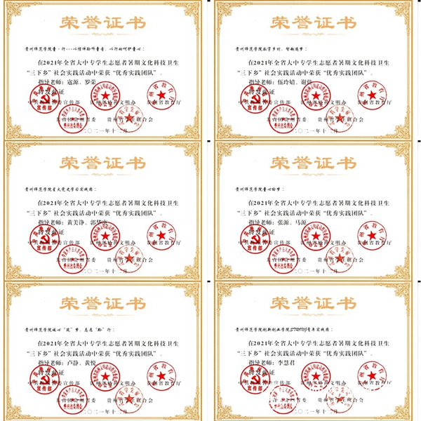 本网讯 为深入学习贯彻习近平新时代中国特色社会主义思想,引导和帮助广大青年学生上好与现实相结合的“大思政课”,省委宣传部、省精神文明办、省教育厅、团省委、省学联对在2021年贵州省大中专学生志愿者暑期文化科技卫生“三下乡”社会实践活动中表现突出的集体和个人开展评优。经学校推荐、省级初评和专家评审等环节,beat365共获评4个优秀单位,6个优秀实践团队,8个优秀实践个人和4个优秀团队项目。