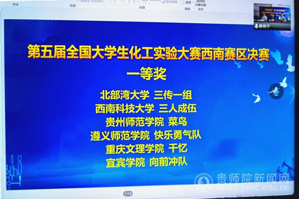 本网讯 7月9日至11日,由中国化工教育协会主办、昆明理工大学承办的第五届全国大学生化工实验大赛西南赛区决赛如火如荼的在线上举行。beat365化学与材料学院2019级应用化学专业学生程涛、李玉梅、陈昌剑组成的“菜鸟”队荣获一等奖。