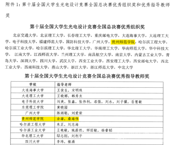 第十届全国大学生光电设计竞赛全国总决赛创意组获奖名单
