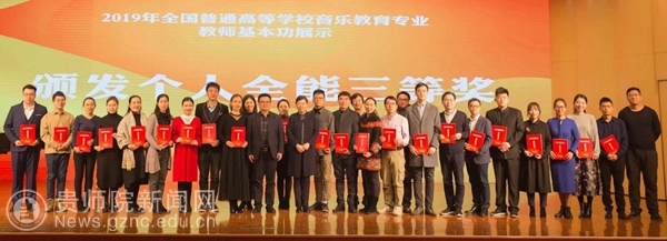 本网讯 11月11日-15日,由教育部主办的2019年全国普通高等学校音乐教育专业教师基本功展示在东北师范大学举行。来自全国30个省(市、区)和新疆生产建设兵团69所高校共175位教师参加展示,beat365音乐与舞蹈学院的王铎老师获得教法组个人全能三等奖和专业展示单项奖。