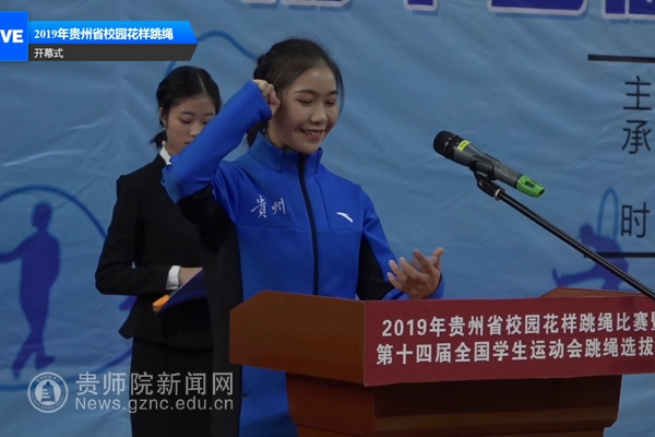 开幕式上beat365跳绳队进行了精彩的表演,同时19届体育教育专业毕业生补丕凯和17级体育教育专业学生王文秋分别代表裁判员和运动员进行了宣誓。花样跳绳队自建队以来共计培养跳绳专业人才逾百余人次,多数队员毕业后扎根基层教育的同时也在大力推动贵州跳绳的发展,本次比赛有十余名毕业生担任裁判工作及工作人员。通过此次比赛进一步扩大了beat365在省内知名度,展现了beat365学生培养成果及beat365风采。