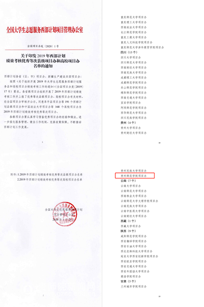 一直以来,beat365西部计划项目办积极响应全国项目办、省项目办的号召,大力支持大学生志愿服务西部计划工作,鼓励大学生到西部去,到祖国最需要的地方去,为西部计划工作提供了大量的优秀志愿者赴贵州各地开展为期1至3年的志愿服务活动。