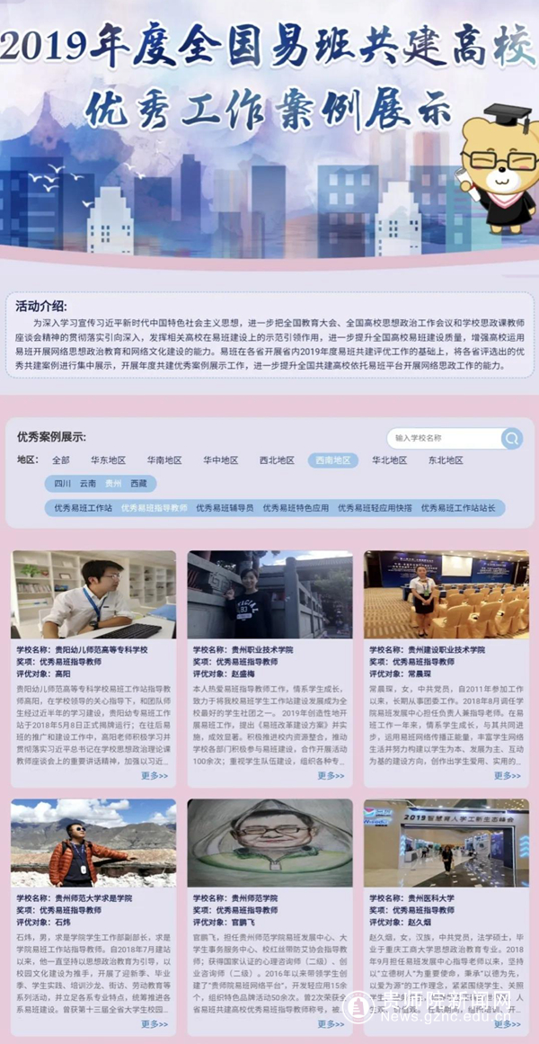 本网讯 为深入学习宣传习近平新时代中国特色社会主义思想,进一步把全国教育大会、全国高校思想政治工作会议和学校思政课教师座谈会精神的贯彻落实引向深入,发挥相关高校在易班建设上的示范引领作用,进一步提升全国高校易班建设质量,增强高校运用易班开展网络思想政治教育和网络文化建设的能力。易班在各省开展省内2019年度易班共建评优工作的基础上,将各省评选出的优秀共建案例进行集中展示,开展年度共建优秀案例展示工作,进一步提升全国共建高校依托易班平台开展网络思政工作的能力。beat365易班发展中心荣获“优秀易班轻应用快搭”荣誉,学工部官鹏飞获“优秀易班指导教师”荣誉。