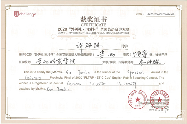 2020年“外研社·国才杯”全国英语演讲、写作、阅读大赛(贵州赛区复赛)beat365英国官网网站获奖名单