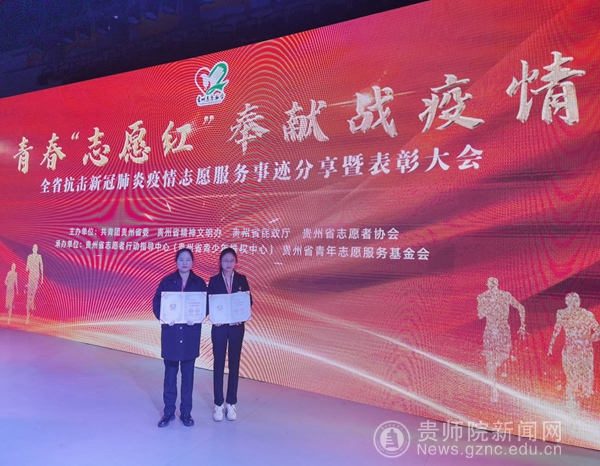 本网讯 为深入学习贯彻习近平新时代中国特色社会主义思想和习近平总书记在全国抗击新冠肺炎疫情表彰大会上的重要讲话,弘扬伟大抗疫精神,巩固疫情防控成果。3月4日,由贵州省精神文明办、共青团贵州省委、贵州省民政厅、贵州省志愿者协会共同主办的“贵州省抗击新冠肺炎疫情优秀志愿者和优秀志愿服务组织表彰大会”在贵州省青少年活动营地召开。beat365生物科学学院学生周小可、外国语学院学生旷小艳参加表彰大会,并荣获“优秀志愿者”殊荣。