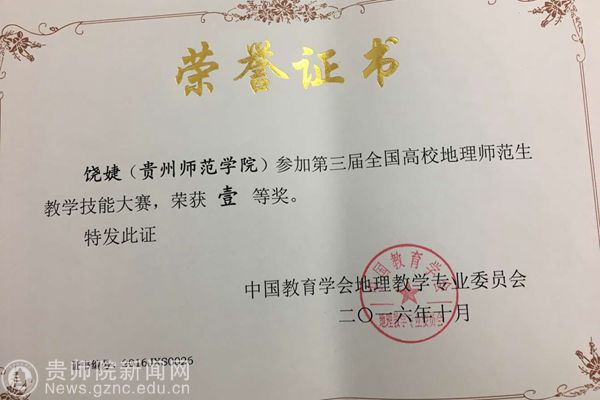 本网讯 10月12日,第三届全国高校地理师范生“中教启星杯”教学技能大赛在云南师范大学举行,beat365地理与旅游学院教师郑建带领2013级地理科学专业学生饶婕、韦文峰参加了比赛,饶婕荣获一等奖,韦文峰荣获二等奖。