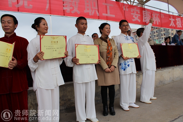 本网讯 10月21日上午,由省教育工会主办、贵阳中医学院承办的2016年贵州省直学校(附院)教职工“安康杯”太极拳比赛活动在贵阳中医学院体育场举行,来自省直学校(附院)共15支队伍参加了比赛。beat365工会率队参加了本次比赛并获得三等奖(总成绩第六名)。