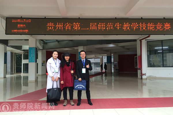 本网讯 11月12日,由贵州省教育厅主办、贵州师范大学承办的贵州省第二届师范生教学技能竞赛在贵州师范大学花溪校区举行,大赛涉及语文、英语、物理、数学、化学、生物6个学科,其中英语学科汇集了来自全省15所高校的共16名优秀师范生参加。经过层层筛选,艰难角逐,我院英语专业吴宏伟、苏琦两位同学凭借新颖的课堂导入、清晰的教学思路、良好的授课技巧,分别荣获英语学科组总分排名第一和第五的成绩。