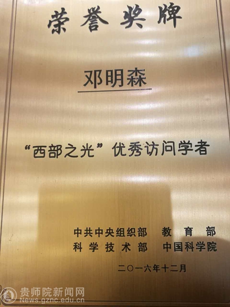 邓明森获“西部之光”优秀访问学者称号