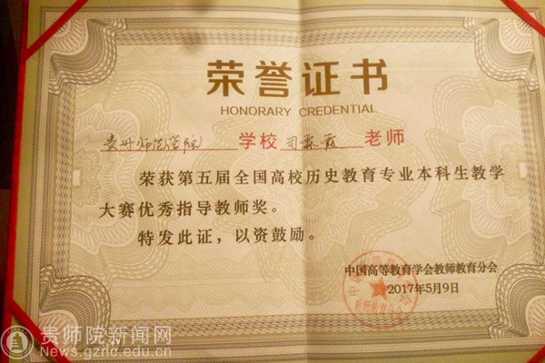 司霖霞获优秀指导教师奖