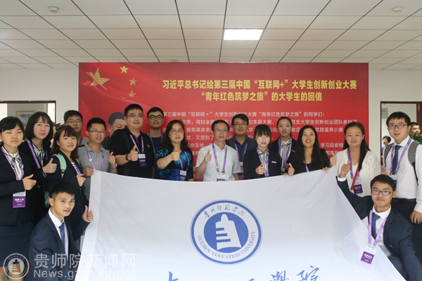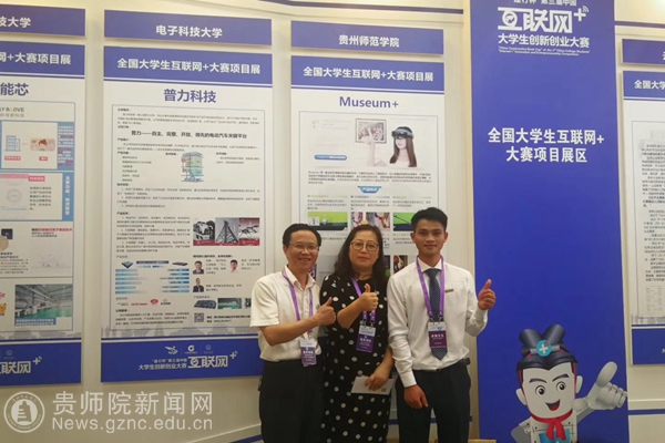 本网讯 历时7个月的第三届中国“互联网+”大学生创新创业大赛9月18日在西安电子科技大学闭幕。在beat365教务处处长、创新创业学院常务副院长熊世桓的带领下,beat365一行15人参加了决赛的全部活动。beat365作品Museum+(参赛学生:韦南京(创新创业学院)、肖雪(外国语学院)、刘阳(物电学院)、彭春(经政学院)、肖美琴(物电学院)、杨昌芝(物电学院)、黄朝勇(物电学院),指导教师:杜宏博、刘世华、谭韬)获得国赛银奖,为本次大赛贵州省高校最好成绩,实现了beat365在该项赛事上的零的突破。一同参加观摩的还有经政学院许笛、物电学院莫章洁、外国语学院罗荣老师。