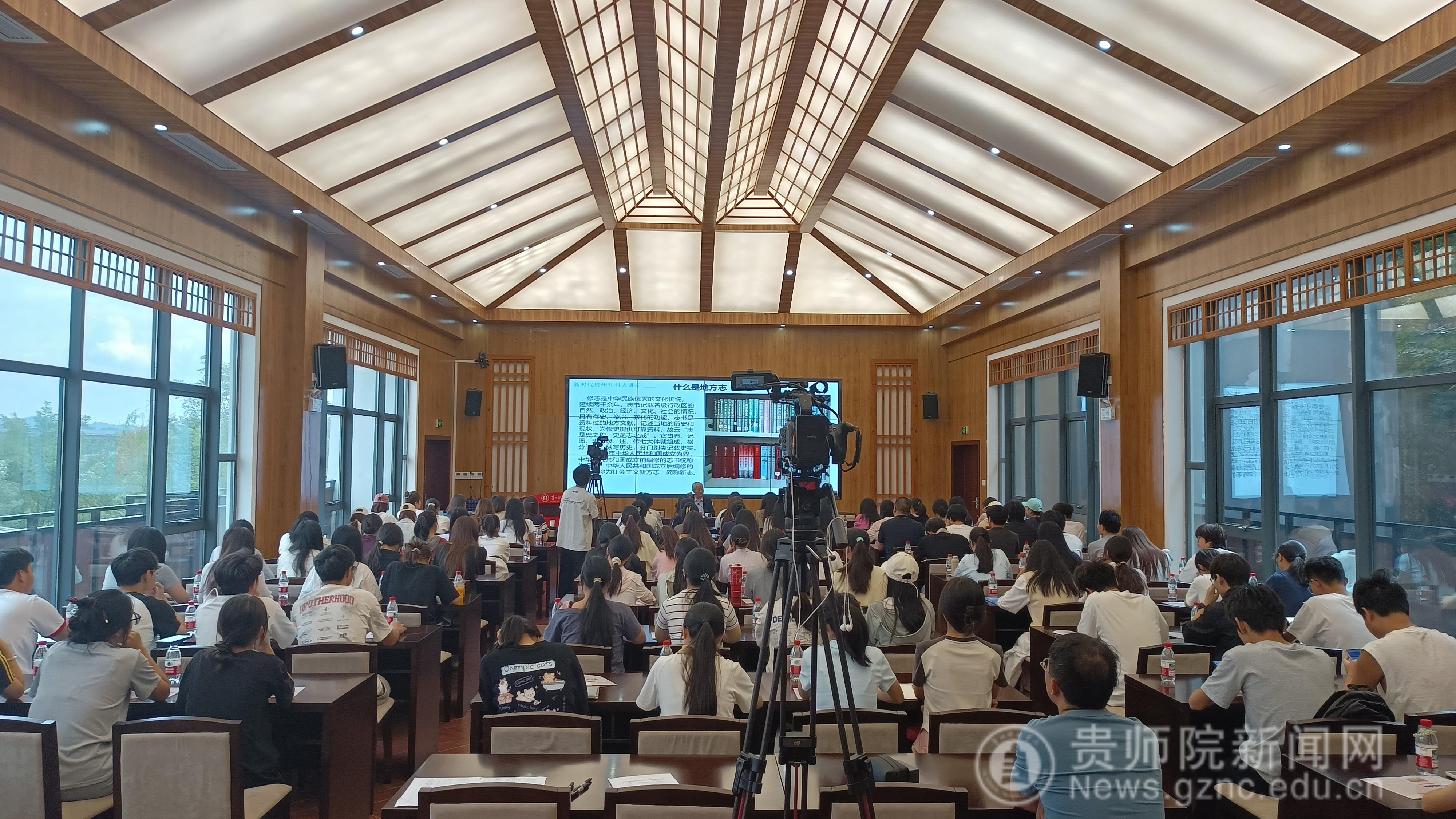 讲座伊始,史继忠强调,修志是中华民族优秀的文化传统,延续两千余年。志书记载各级行政区的自然、政治、经济、文化、社会的情况,具有存史、资治、教化的功能。以1949年为界,中华人民共和国成立前、后编修的志书统称为旧、新志。随后,他逐一列出旧志,并解析其撰写特点。他说,晋人常璩所纂的《华阳国志》是西南地区最早的方志,现存最早的省志是明(弘治)《贵州图经新志》。明(嘉靖)《贵州通志》在图之后分为十二卷,以事为经分为十个门类。明万历《贵州通志》不失为“黔中善本”。明(万历)《黔记》乃万历时贵州巡抚郭子章私纂,是明代最为宏富的一部省志。清代有(康熙)《贵州通志》、(乾隆)《贵州通志》,收入《四库全书》。《遵义府志》被梁启超称为“府志中第一”。生动的方志撰写故事和现实的案例分析,使抽象的贵州方志精神变得具体而生动。在比较新志与旧志的特点时,他说,新志继承修志的体例和基本原则,在篇目和内容上多有改变。一言以蔽之,新志与旧志纲目体制上的差异,主要表现在时代变迁、科学发展。