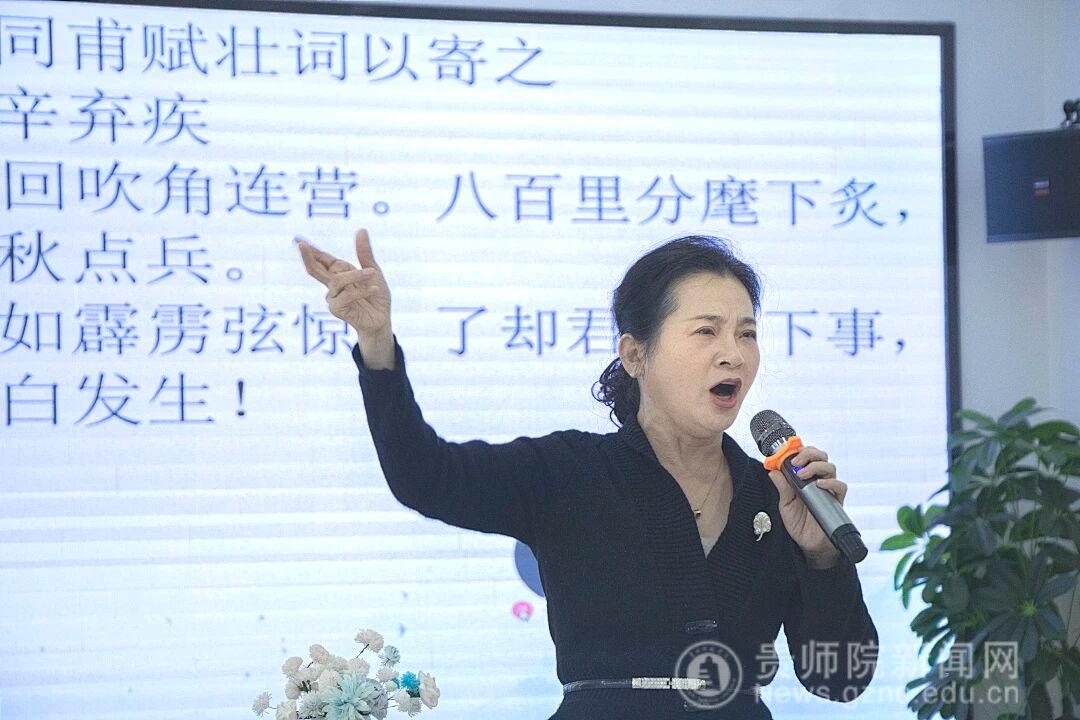 活动特邀beat365英国官网网站教育科学研究所所长、省实验中学校长王又新教授进行专业指导,通过《春江花月夜》的空灵意境和《破阵子·为陈同甫赋壮词以寄之》的豪情壮志的对比演绎,引导学生不仅感受声韵之美,更深刻领悟诗文中所蕴含的家国情怀、人生境界和审美追求。在逐句研习中,学生既掌握了“声画联动”的艺术技巧,更在经典诵读中增强了文化认同与文化自信。
