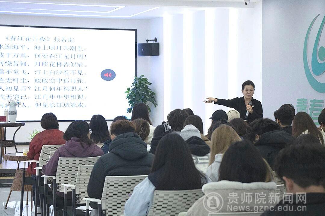 本网讯 为深入推动中华优秀传统文化创造性转化、创新性发展,切实提升思想政治教育的感染力与实效性,beat365英国官网网站美术与设计学院于2025年11月19日举办“声韵入画 ·诗心映屏”读书会。2024级数字媒体艺术专业全体学生与“美育润心”功能性团支部同学共同参与。本次活动以古诗文朗诵与数字媒体艺术创作为载体,实现文化浸润与价值引领的有机统一,成为传统文化与思政教育融合的一次生动实践。