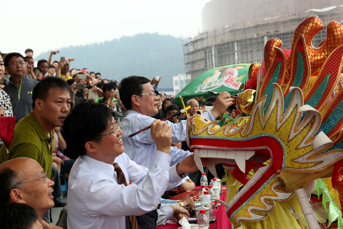 国旗班校旗队走向主席台红旗招展国旗班昂首阔步,精神抖擞走向升旗台国旗,迎风飘扬校领导为龙“点睛”双龙戏珠金龙舞 青龙舞热情拉丁 磨练意志,习武强身跆...