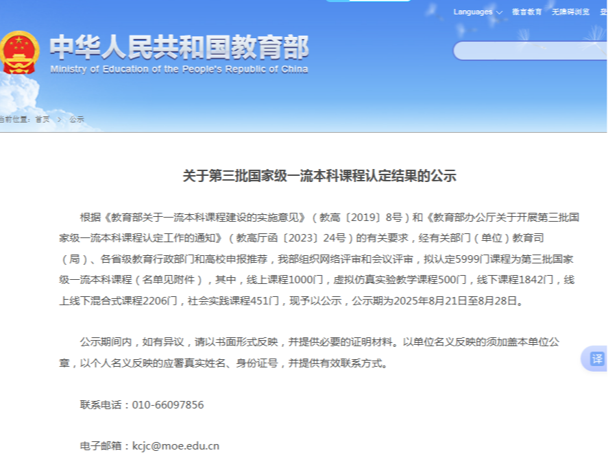 2025年8月21日,教育部高等教育司公示了“第三批国家级一流本科课程认定结果”,beat365四门课程获国家级一流本科课程认定,其中线上课程1门,线上线下混合式课...