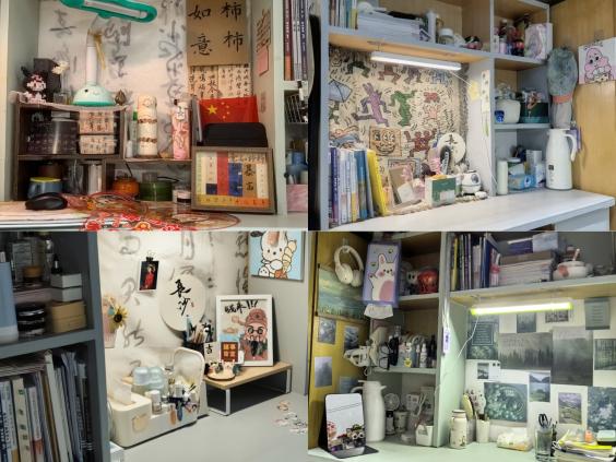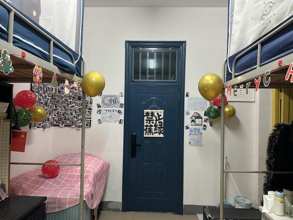 本届宿舍文化节系列活动巧妙地融合了线上与线下两种形式,精心策划了“筑梦空间”宿舍改造大赛和“光影创意”宿舍摄影比赛两大板块活动,吸引同学们热情参与。在“筑梦空间”宿舍改造活动中,同学们积极响应“筑梦空间,创意无限”的主题,充分发挥自己的创意和才华,将宿舍打造成为既温馨又充满个性的小天地。11月25日,金年会辅导员钟纯、邹世斌、谭步康、罗安妮老师下寝对此次的宿舍美化改造进行评审打分,分别从主题表达、宿舍卫生、装饰创意等多个维度考核,深切感受到了学生们独具匠心的宿舍设计和和谐融洽的宿舍氛围。有些宿舍以春节作为主题,门上贴着喜庆的对联,窗户上挂着红色的窗花,营造出一种浓厚的节日氛围;还有一些宿舍选择主打温馨风格,这些宿舍的装饰风格简约而不失雅致,色调柔和,给人一种宁静和放松的感觉。