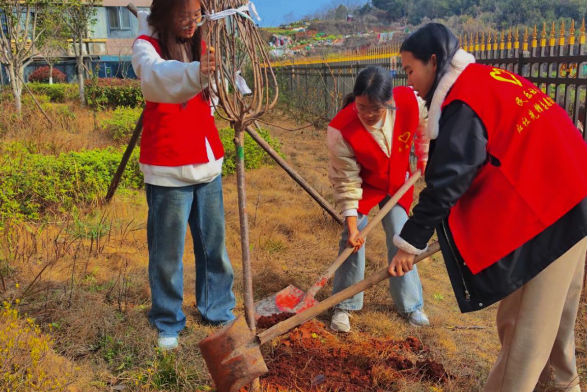 活动现场,志愿者与居民热情互动,分工协作。大家纷纷挽起袖子,拿起工具,扶苗浇水,以饱满的热情投入其中,展现了青年学子对环保事业的责任感,成为活动现场一道亮丽的风景线。