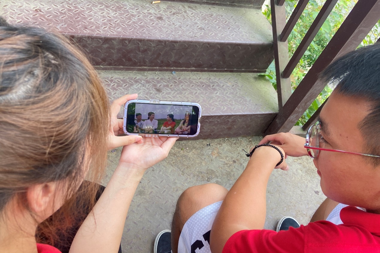 图 20级计算机专业吴奥成在观看《远方—在复兴的赛道上》