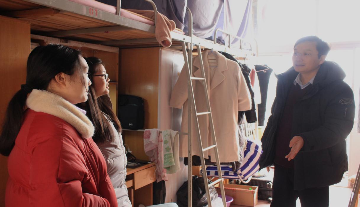 为统筹做好返校生复学工作,准确把握毕业生毕业心态、就业意愿和就业方向,确保学生在舒适温馨的校园中安心学习和生活,自2月28日至3月2日,金年会院长禹旭才、党委书记周光明、党委副书记廖双红、学工办副主任钱宁先后在辅导员的陪同下,前往返校学生宿舍进行慰问。