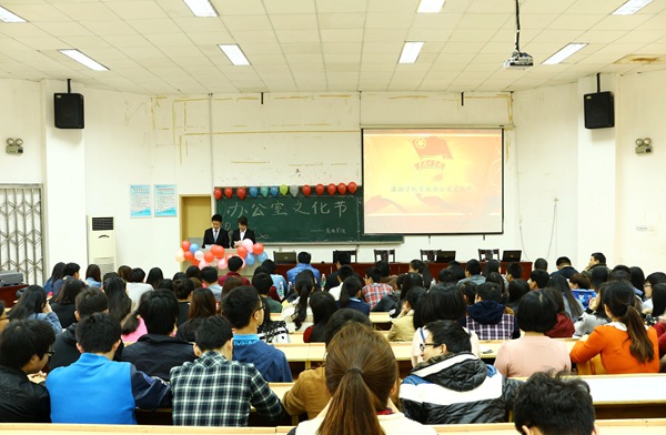 4月1日,进行的是PPT展示和老师宣讲环节。首先,由各办公室派出代表结合ppt介绍所在办公室的特色文化。“金年会办公室在团委学生会中起到的是协调和枢纽作用,负责沟通学生会各部门工作。”院办的赵姣睿第一个上台做了介绍;人文社科体育学部则展示了一种新集体文化的诞生过程;机电学部的宋超则用“513爱情故事”感染了大家。比拼结束后,校团委唐部长为大家讲述了目前我校的校园文化概况,并详细介绍校团委职能,鼓励大家多去参加校园实践活动,要勇于尝试新事物。唐部长的精彩宣讲得到大家热烈的掌声。