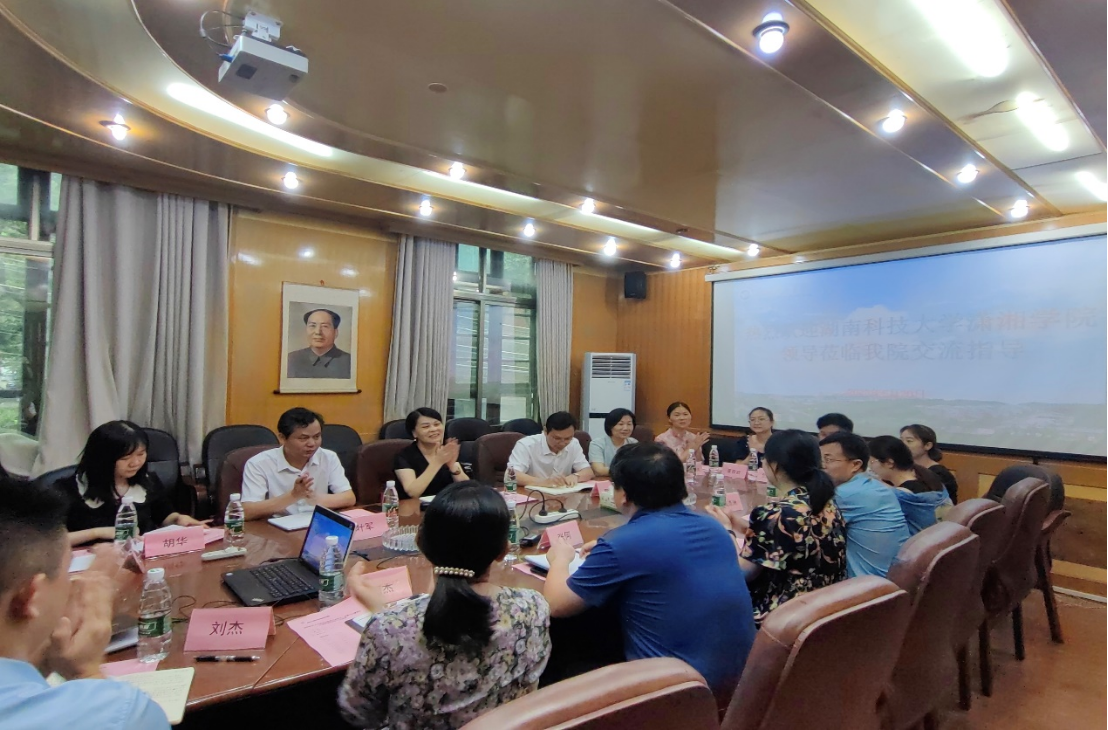 6月20日,金年会院长禹旭才、党委书记廖双红带队到湖南工程学院应用技术学院进行工作交流。副院长余蓉晖、副书记叶军及学院各科室负责人、学部部长参加。