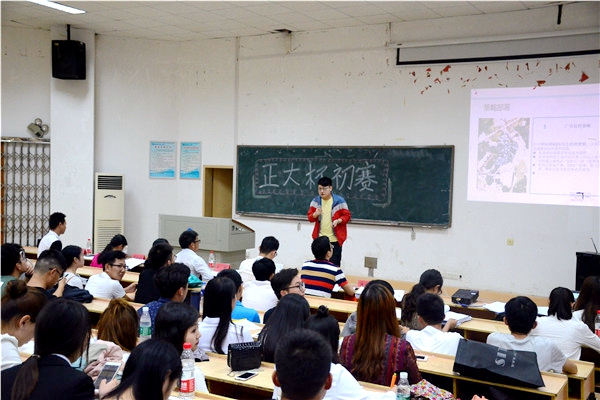 比赛正式开始后,首先上场的是“大米”团队,他们的队名源自正大集团的优质大米,极富创意,大米团队的重点在销售,销售的重点则是高档社区,他们将目标瞄准食品配送的最后一公里,线下与物业公司合作,线上则提出运用O2O和微信公众号等最新的宣传手段提高知名度、打开市场;与大米团队不同的是“说服力”团队,他们将团队重点放在宣传上,提出正大食品的短板在宣传力度不够,要通过多种手段加强宣传,提高产品知名度;“潜途无量”团队则一上场就表现出了专业和严谨的态度,团队主讲人一身正装,四名队员也悉数到场,该团队对湘潭本土市场进行了充分调查,掌握了详细的第一手资料,因此,该团队的SWOT分析以及产品营销方案等获得了评委的一致好评。除此之外,“风启”、“Beauty”和“南孚”等团队均发挥出色。