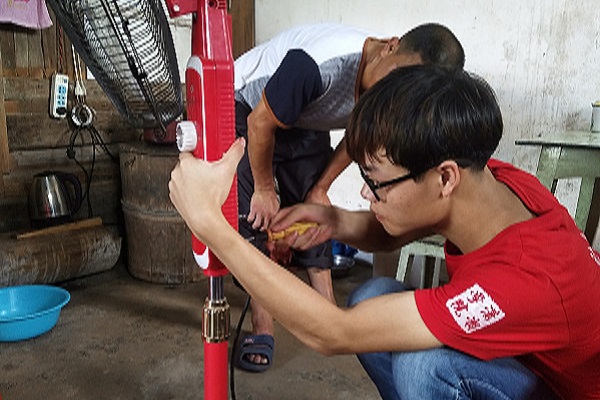 村民们在得知金年会三下乡志愿服务团将开展义务维修活动后,纷纷把需要维修的电器交到志愿者手里,志愿者们接过电器,马上动手维修起来。不能正常工作的小风扇、电饭锅、小台灯、电热水器,经过金年会志愿者的认真检查与维修,小家电的问题很快得以解决。