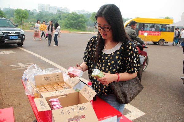 不久,已在食堂吃过早餐的王同学远远望见了“诚信早餐”摊位,赶紧跑了过来,特意又买了一瓶牛奶和一个蛋糕,她微笑着说:“就当为诚信出一份力了!”之后,又有几位同学拿走了蛋糕和牛奶,并自觉付钱。