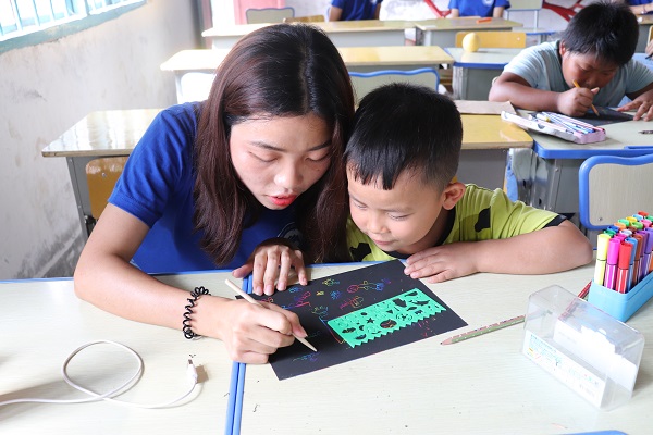 金年会jinnianhuicom暑期三下乡支教团队还在教学课堂上采取了奖励制度,对勇敢表现自己的小朋友奖励小红花。一天支教课程结束后,小朋友们可以根据小红花的数量排名获得志愿者老师们准备的不同奖品,这增加了孩子们上课的积极性,也让孩子们在课堂上更加踊跃的去表现自己。在获得了知识的同时,也使自己变的更加自信,朝着更高的人生目标迈进。 “我获得了7颗小红花啦呢!”今年10岁的唐桂林在上完美术课后兴奋的说道。尽管一天的课程已经结束,但还有几个小朋友仍坐在课桌上写着语文老师写在黑板上的古诗。