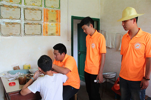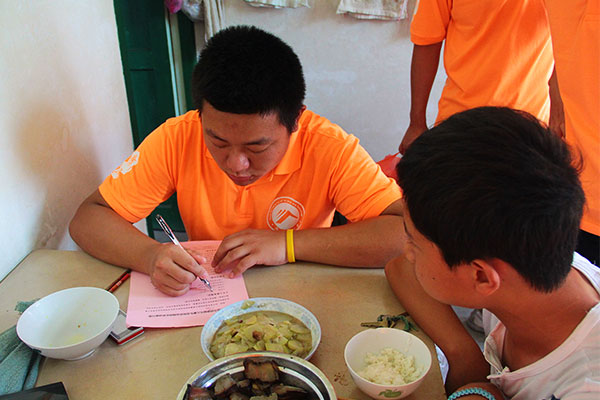 通过志愿者挨家挨户的敲门解说,村民们对此次调研活动逐渐理解,并配合填写调查问卷。“爷爷,请问您最担心孩子哪一方面?身体健康、交友情况还是学习情况?”由于很多老人并不识字,调研组的成员们只能一个字一个字十分耐心地念给老人们听。